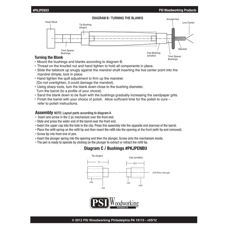 - Compatible with bushing set PKJPENBU. Minimum blank size needed to turn is 3/4" x 3/4" x 3-1/4".