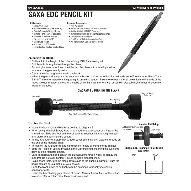 - This is a woodturning project kit; Hardware pencil parts only; A LATHE IS NEEDED TO 'TURN' INTO FINISHED PENCIL; Blank, bushing set, drill bit and all other turning tools and supplies are not included