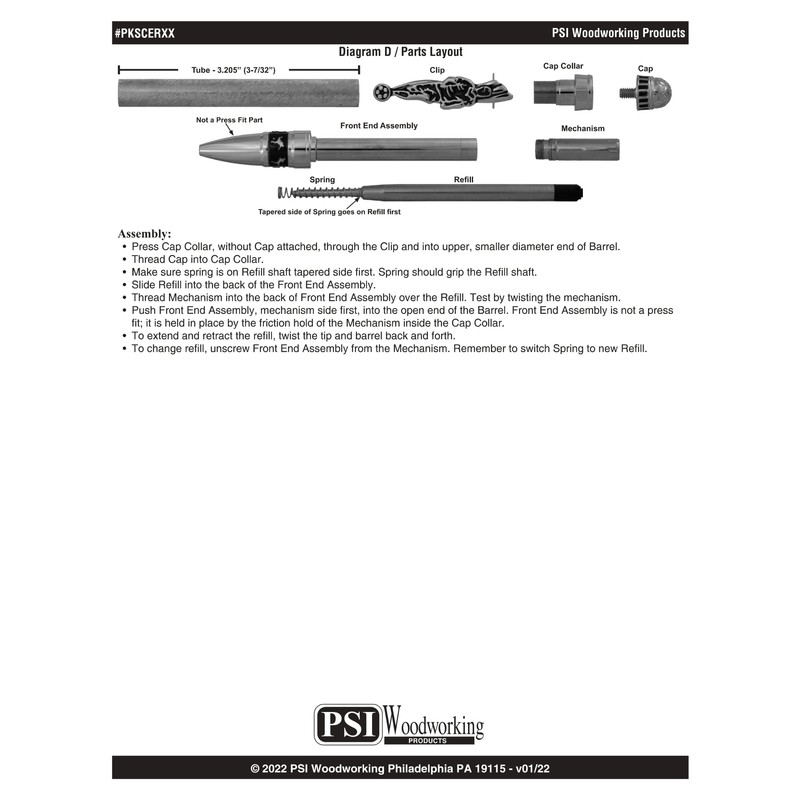 - Compatible with bushing set PKSCERBU; Features a 3/8" single tube design and a Parker style refill in black; Minimum blank size needed to turn is 3/4" x 3/4" x 3-1/4"