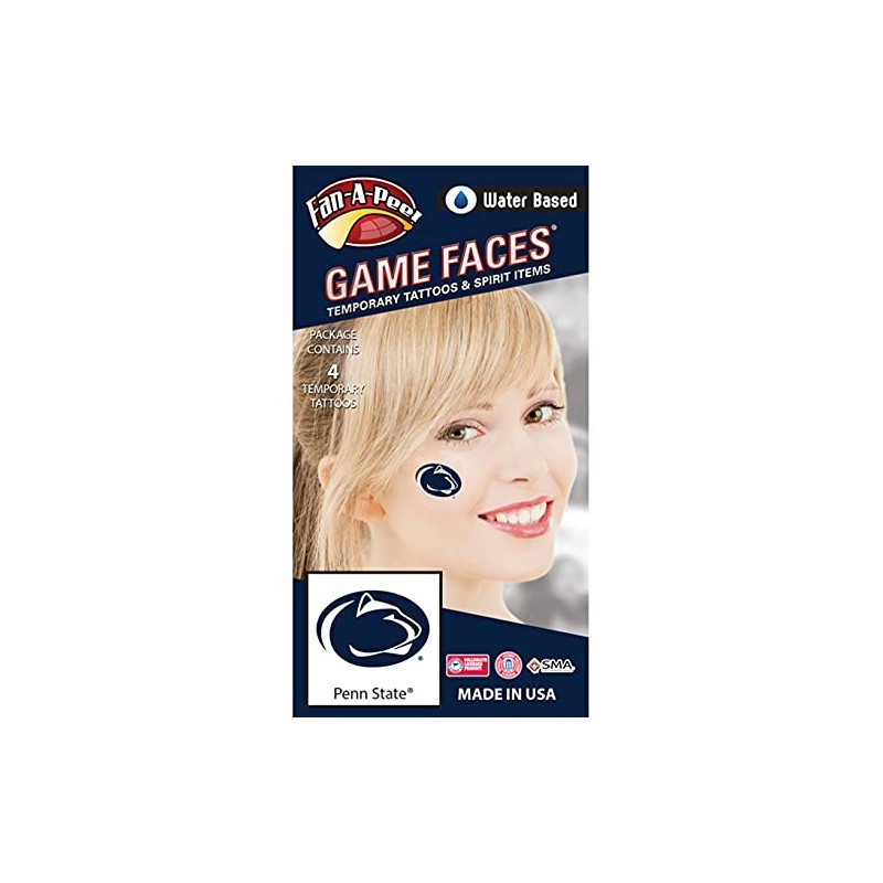 Penn State (PSU) Nittany Lions – Water Based Temporary Spirit Tattoos – 4-Piece – Dark Royal Blue Lion Head Oval Logo
