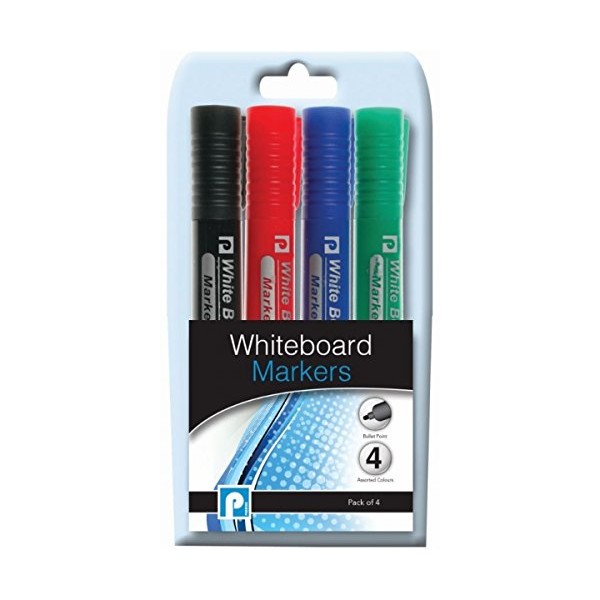 - Includes four white board markers: black, blue, red and green markers