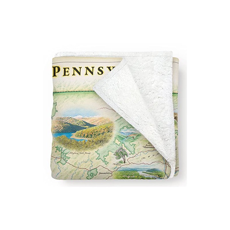 Pennsylvania State Fleece Blanket Map - Hand-Drawn Original Art - Soft, Cozy, and Warm Throw Blanket for Couch - Unique Gift - 58"x 50"