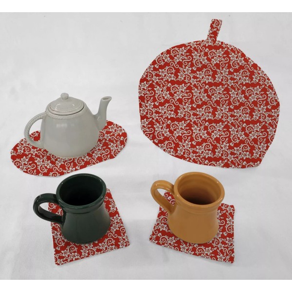 Penny's Needful Things Floral Damask Tea Pot Cozy & Coaster Set - Red