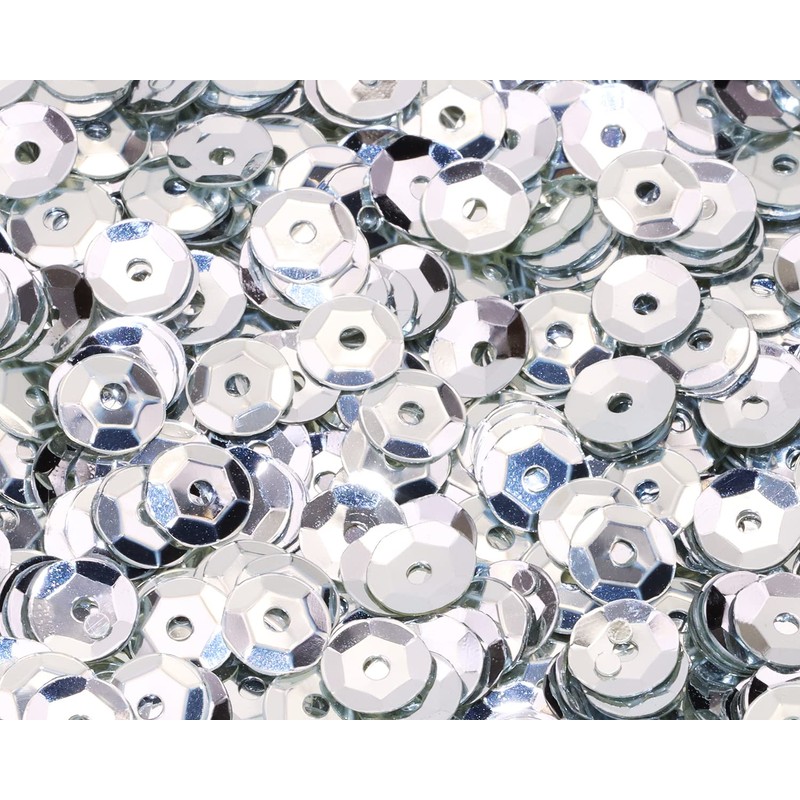 Penta Angel Loose Sequins 4000Pcs 6mm Round Embroidery Craft Sequins Cup Iridescent Spangles for Sewing Christmas Decoration (Silver)