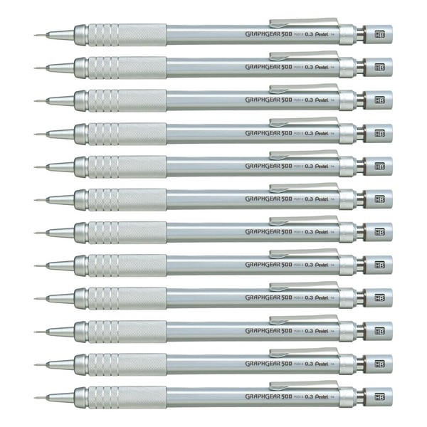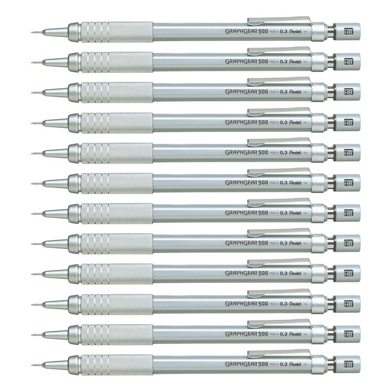 Pentel 0.3 mm Graphgear 500 Mechanical Pencil, PG513-E, Silver