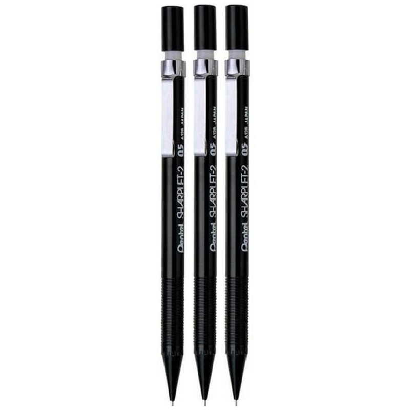Pentel 0.5mm (A125) Black Sharplet 2 Automatic Pencil Drafting Mechanical Refillable Lead & Eraser A125-A (Pack Of 3)