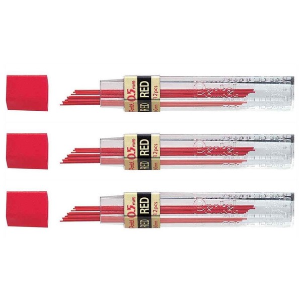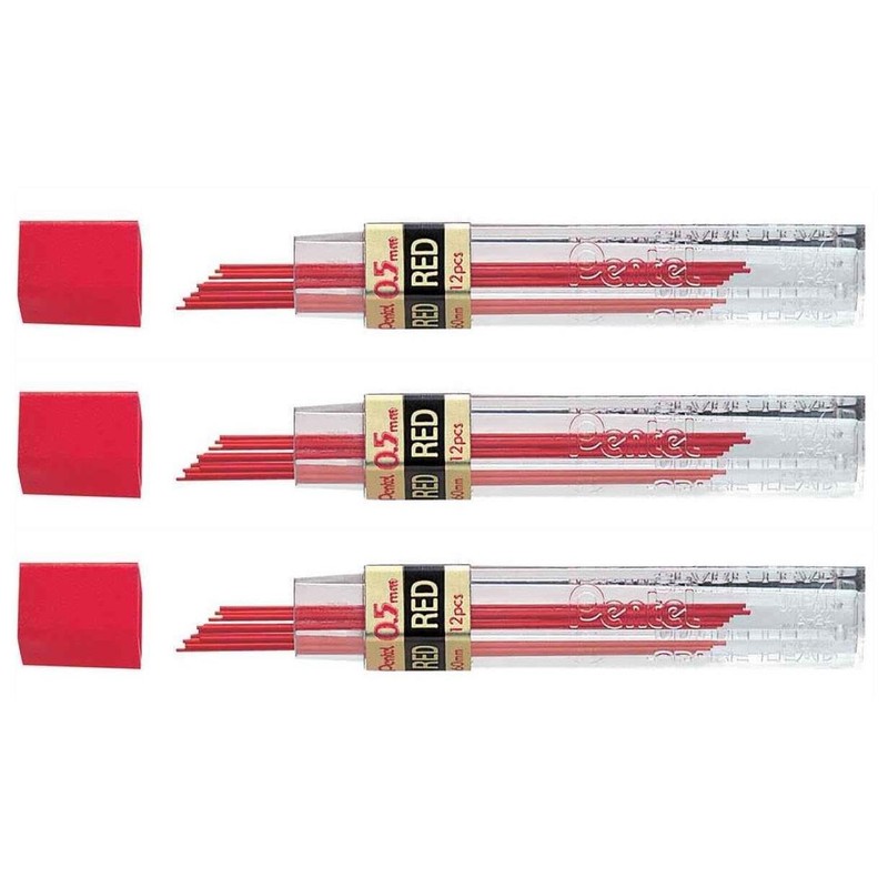 PENTEL 3 Packs of 12 Leads Red 0.5mm for Mechanical Pencil