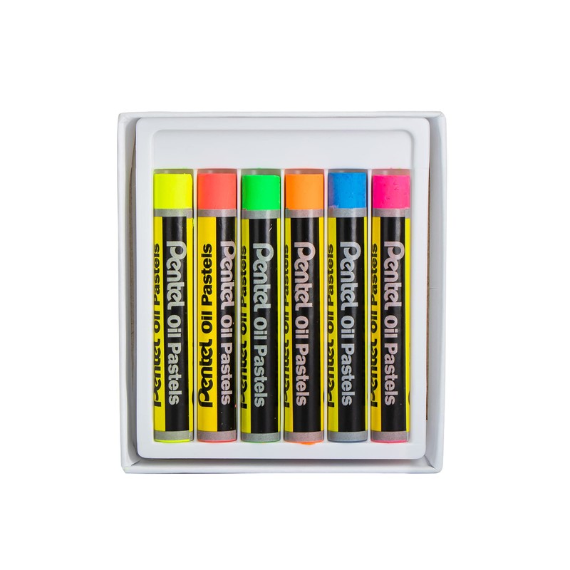- Vivid fluorescent oil pastels works well on both white and black paper