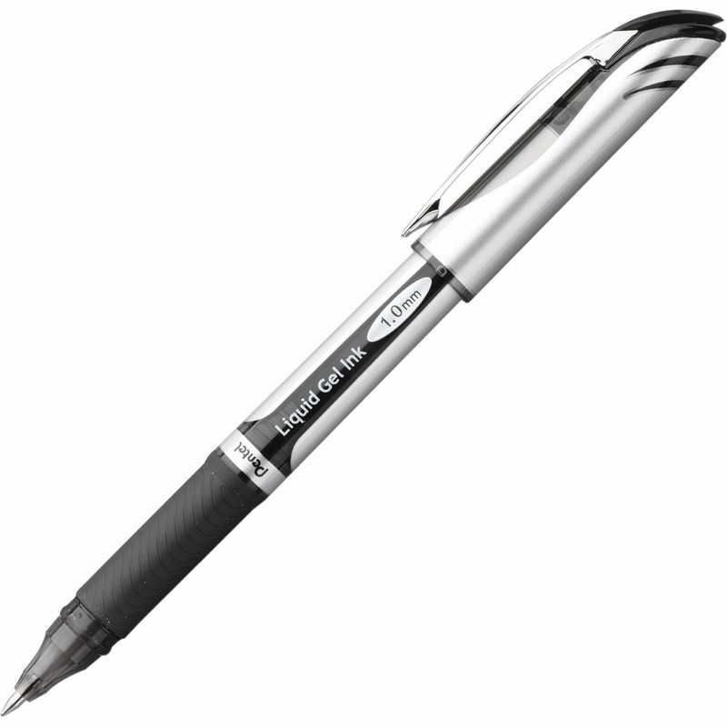 • Cap-style EnerGel rollerball pen with chunky, metallic-look barrel