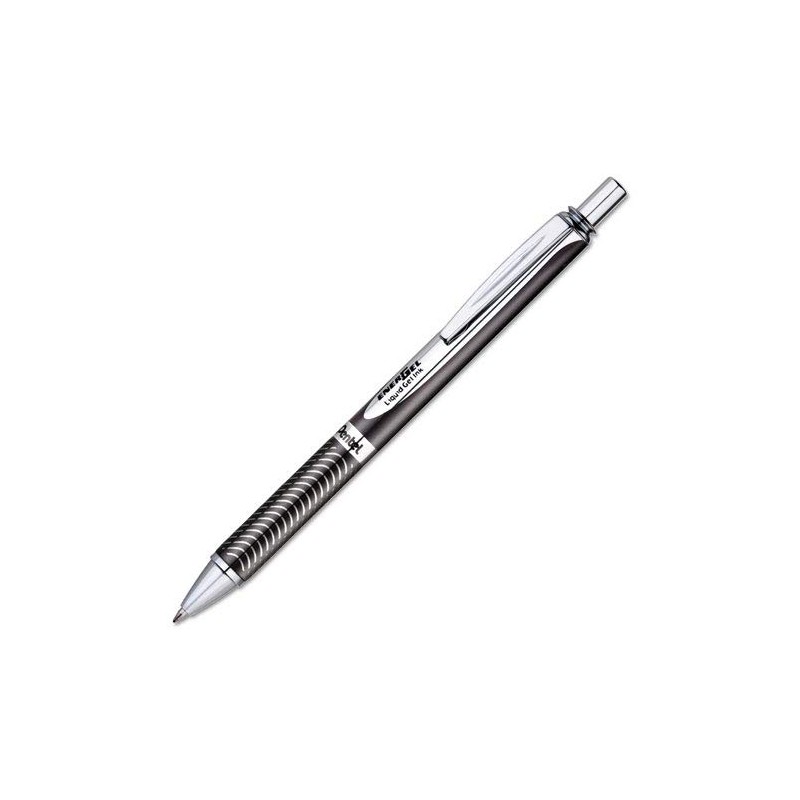 The Pentel EnerGel Alloy RT Gel Pen (BL407) pen boasts a balanced aluminum alloy barrel, a distinctive textured grip and chrome accents. The advanced blend of smooth liquid and gel inks is quick drying and great for left-handed writers. The Pentel Energel strikes an impressive balance between style, strength and performance. Retractable. Refillable. . Length approx: 5.75". Black barrel (BL407-A-AI) Pentel EnerGel roller pen refills compatible with this pen are 0.5mm needle tips (, , ), 0.7mm needle tips (, , , ),0.7mm metal tips (, , , , , , , ) and 1.0mm metal tips (, , , ).