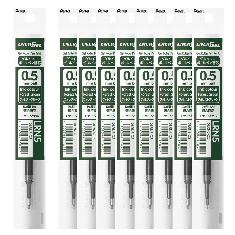 Pentel EnerGel Ballpoint Pen Refill, 0.5mm, Forest Green, 10 Count XLRN5-D3 (10)
