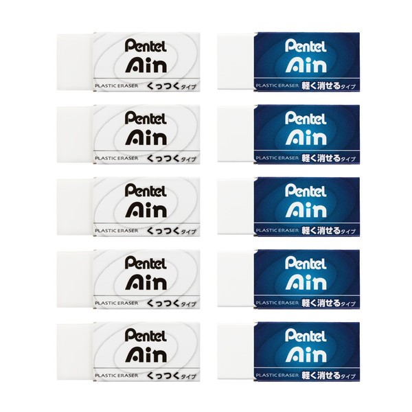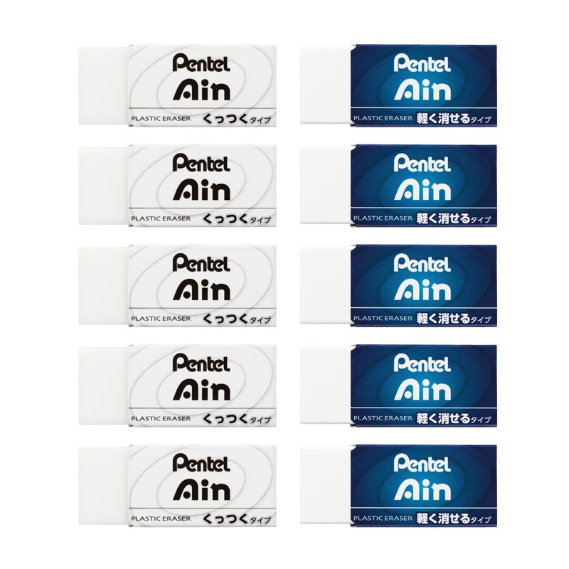 Pentel Eraser, Pentel Ain, Lightly Erasable, 2 Types, Small, 10 Pieces, ZEAHC610AMZ