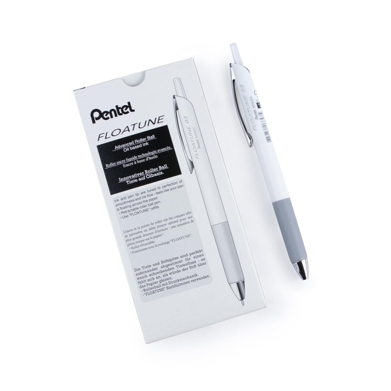 Pentel Floatune, Retractable Advanced Rollerball Pen, 0.3mm Tip, Black Ink, Box of 12