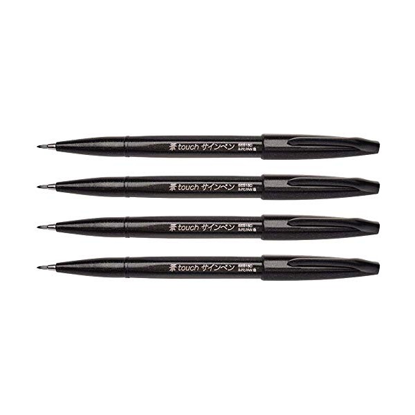Pentel Fude Touch Sign Pen - Black - Pack of 4