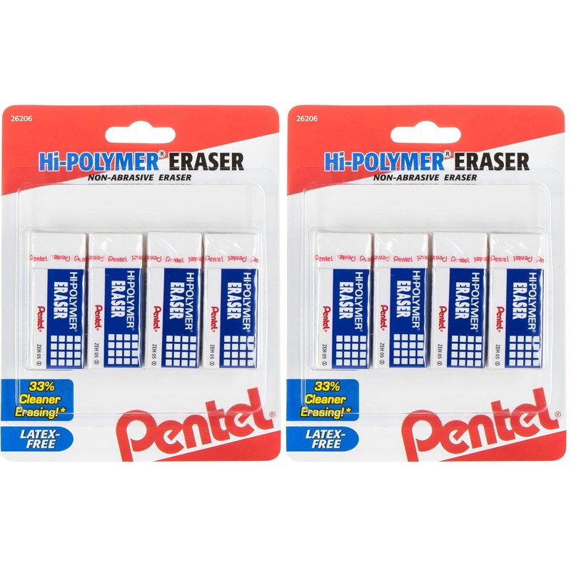 Pentel Hi-Polymer Block Eraser Small White, Pack of 8 (ZEH05BP4)