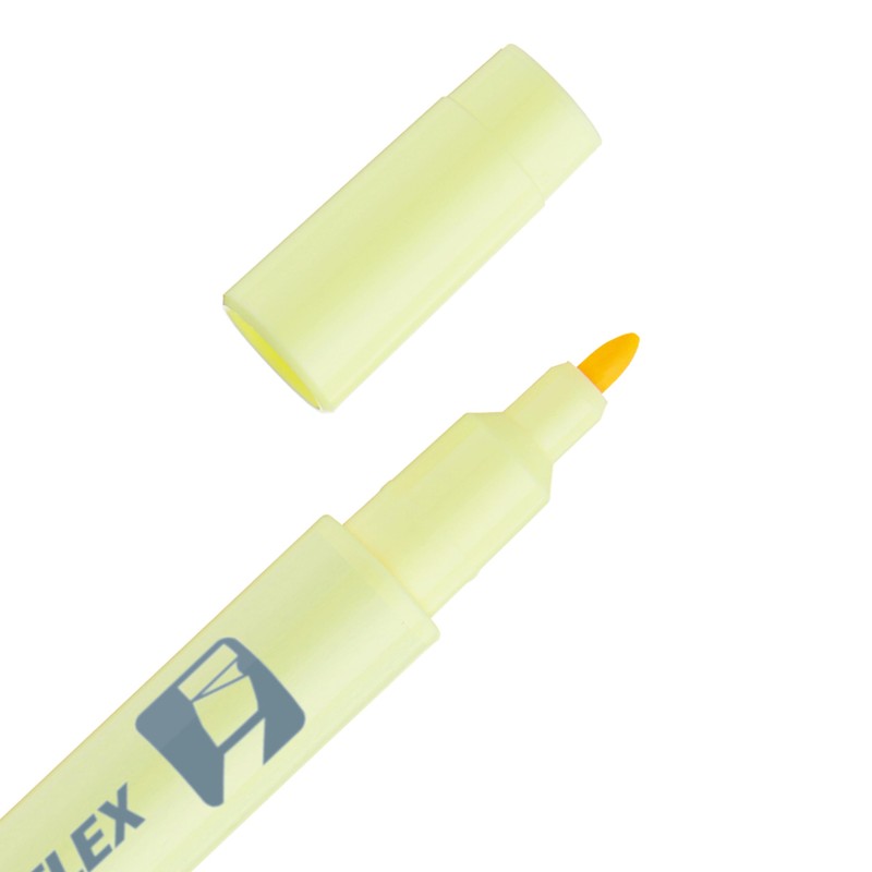 - A dual tipped highlighter with a fine bullet tip and a special chisel tip.