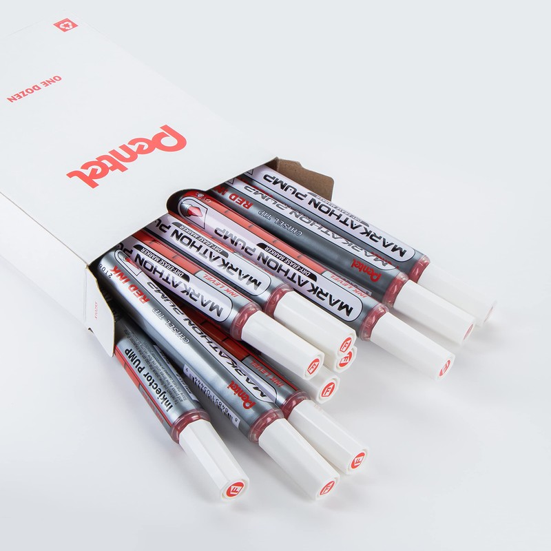 Pentel Markathon Pump Dry Erase Marker, Chisel Tip, Red Ink, 12 Pack (MWL6SX-B)