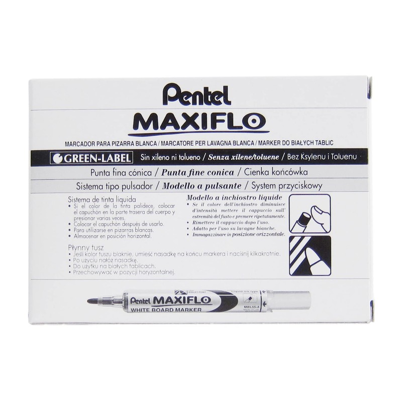 Pentel Maxiflo Dry Wipe Fine Bullet Point Marker - Black (Pack of 12)