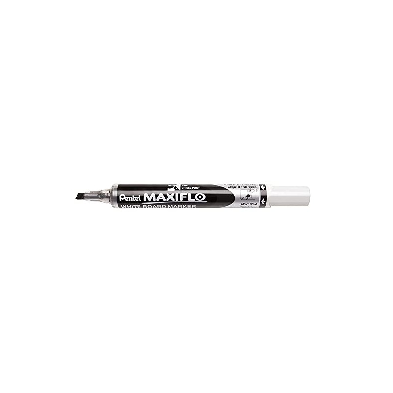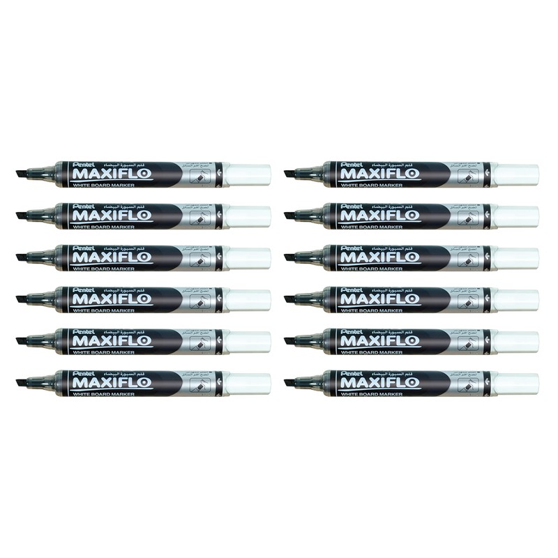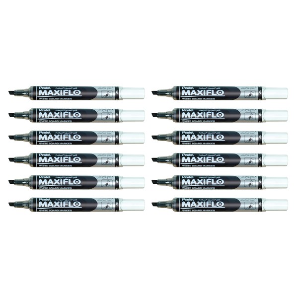 Pentel Maxiflo Dry Wipe Slim Chisel Tip Marker - Black (Pack of 12)