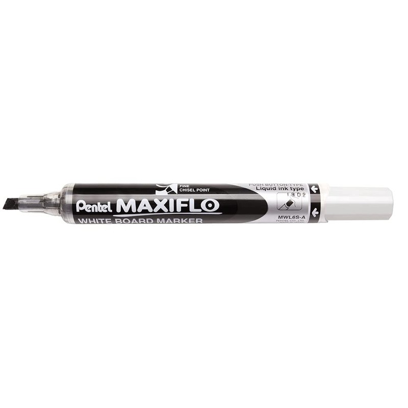 Pentel Maxiflo Dry Wipe Slim Chisel Tip Marker - Black (Pack of 12)