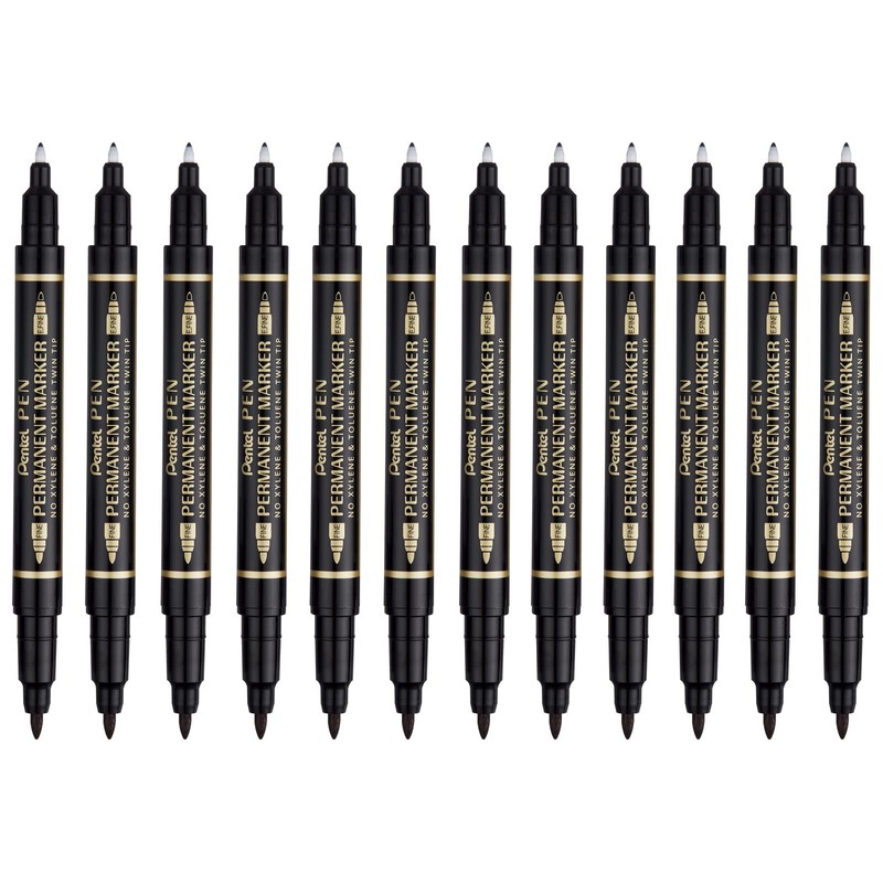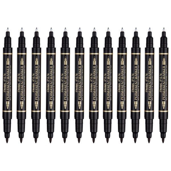 Pentel N75W-A Marcador Permanente Doble Punto, Negro