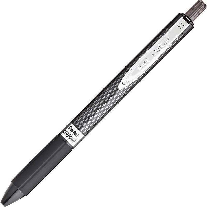 The Pentel® Oh! Gel retractable gel pen features acid-free, permanent gel ink that delivers a memorably smooth writing experience. The latex-free grip provides extended comfort and control when writing. The stylish carbon fiber look gives this pen unique appeal. It is available with a 0.7mm metal tip that writes medium lines. The Oh! Gel pen is refillable with any color (Black, Red or Blue) Kfr7 refill. It is backed by pentel’s limited lifetime warranty.