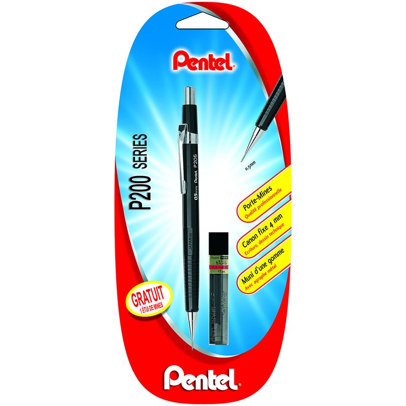 Pentel P205 Mechanical Pencil 0.5 mm Fixed Barrel 4 mm Black