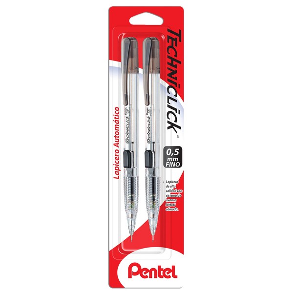 Pentel PD105BP2-A Lapicero Techniclick, Negro, Blíster 2 piezas, 0.5 mm