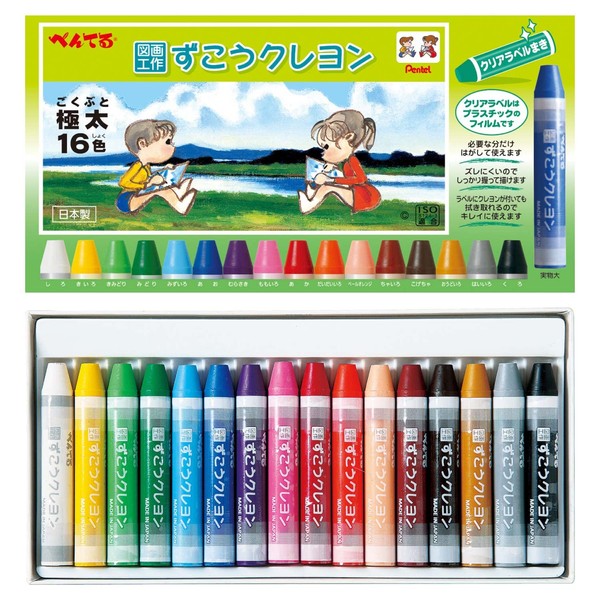 Pentel PTCGP1-16 Zuko Crayons, Clear Label Springs, 16 Colors, 5 Count