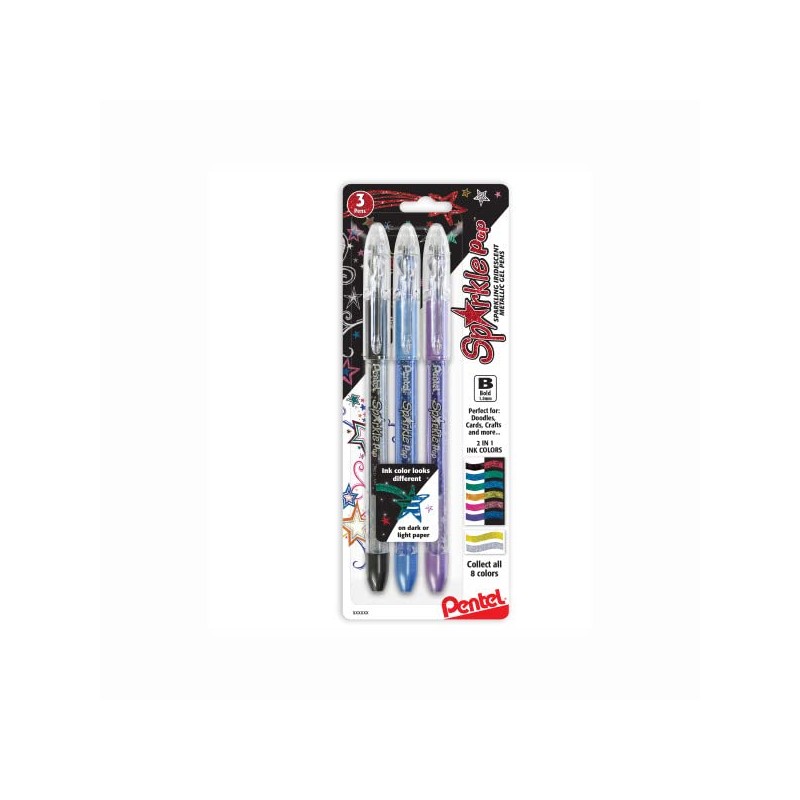 Pentel Sparkle Pop Shimmering Metallic Gel Pen, (1.0mm) Bold Line, Assorted Iridescent Ink Colors, 3 Pack