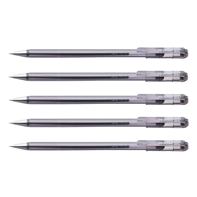 PENTEL SUPERB BK77F Ballpoint Pens Fine Tip Black Pack of 5