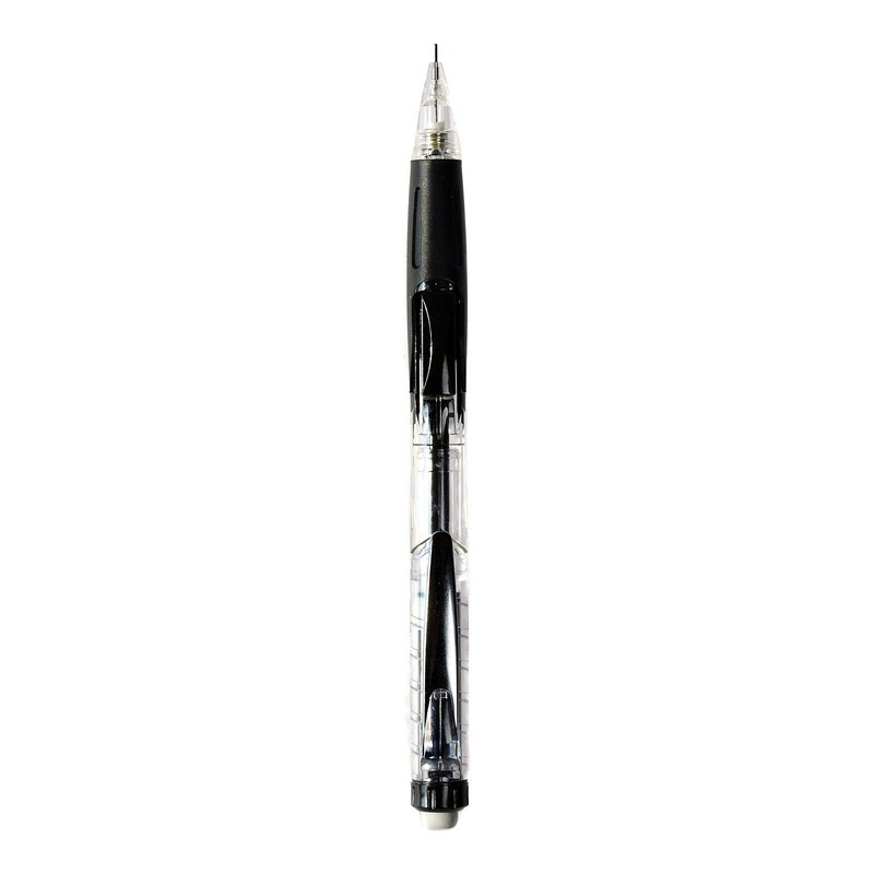 Clear barrels with color accents for a stylish twist on pencils. Quick-click side button advances lead without interrupting your writing. Mistakes are no match for the larger than ordinary and long lasting twist-up eraser. Pre-loaded with Pentel Super Hi-Polymer HB lead.