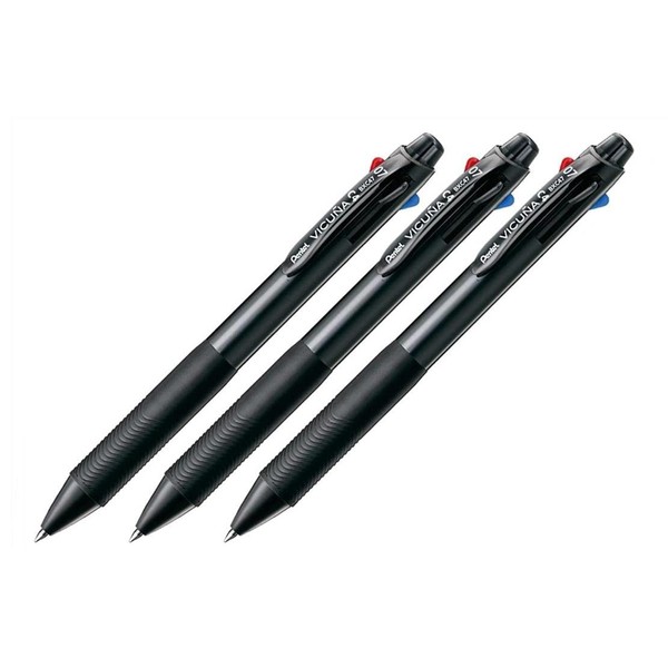Pentel VICUNA Ballpoint Pen - Black Barrel - 4 Colours - Pack of 3