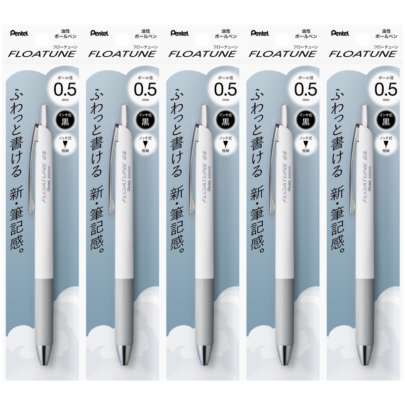 Pentel XBZN205-A Floatune Oil Based Ballpoint Pen, 0.5 mm, Black, 5 Ct