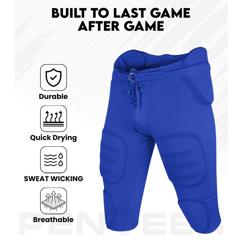• MATERIAL: Penveer youth integrated football pants are made with 100% Polyester. The pants comes with integrated EVA foam pads and the moisture-wicking fabric effectively manages sweat, while the ergonomic design reduces friction and irritation.