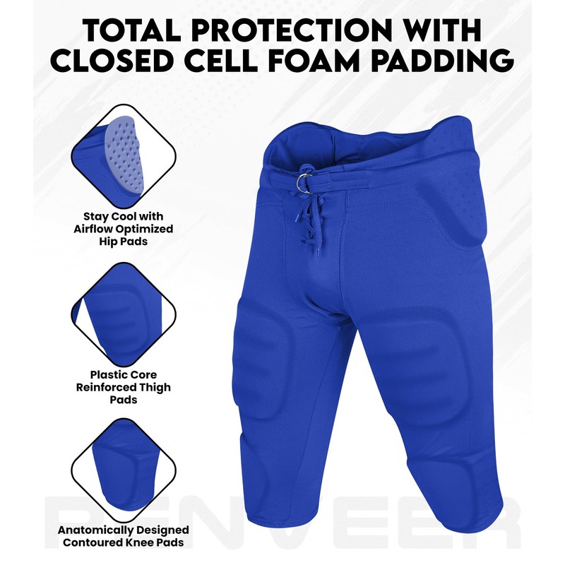 - RELIBILITY: By any chance if your opponent hits you brutally, our boys football pants will provide you essential protection for thighs, hips, knees and tailbone, helping you to stay safe and perform at your best like a pro player. Our youth padded football pants are designed to protect you from severe impacts and keep your confidence up on the field.