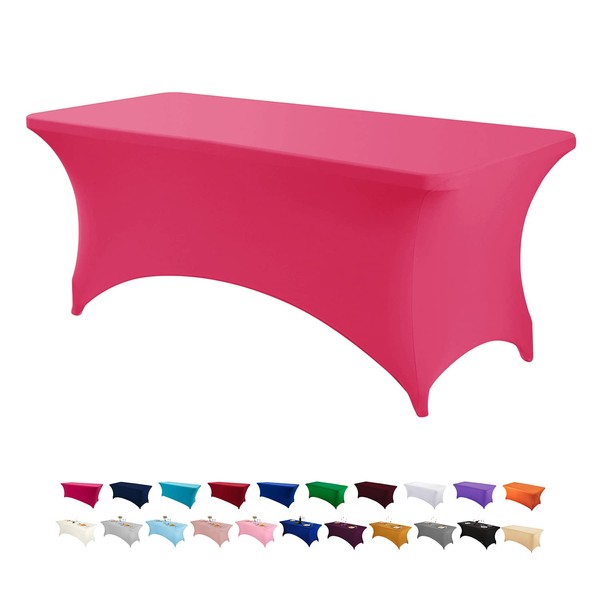Peomeise 6FT Spandex Table Cover Rectangular Stretch Spandex Tablecloth (Hot Pink,6FT)