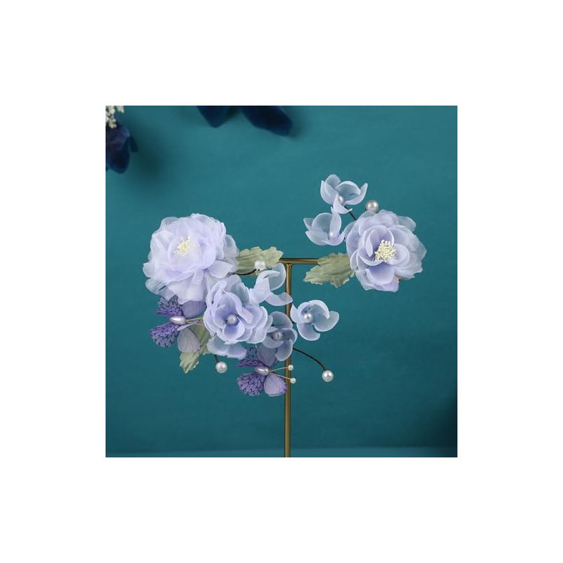 Peony Flower Hair Clip, Chinese Hanfu Classic Style Handmade Flowers Hair Clip, Hanfu Party Wedding Decor - 2 Pcs (Blue)