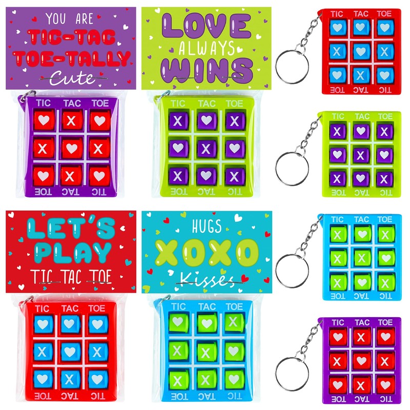 - Package includes: our package contents 24 pieces of valentine's day tic tac toe keychains and 24 pieces of valentine theme cards in 4 patterns; the considerate design and sufficient quantity could bring more happy time to your friends.