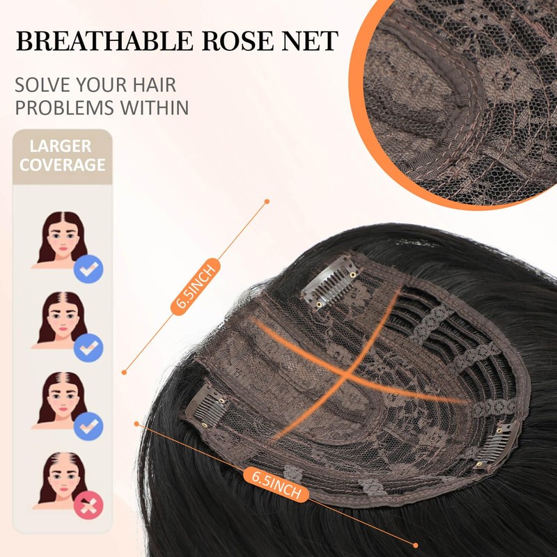 - 【Comfortable and Easy to Apply】The curved design of base has more realistic silk skin and perfectly fit the head contour, our hair toppers also have anti-slip clips can help more secure and comfortable to wear all day, attain beauty and confidence with utmost ease.