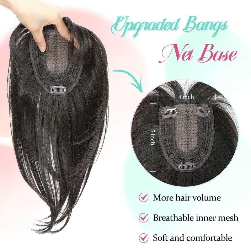 - 【Innovative Base Design】Our 4x5-inch base with a breathable net cap ensures a snug and natural fit, eliminating common issues like awkward gaps at the crown. Perfect as a clip-in fringe, it effortlessly conceals receding hairlines, widening parts, and thinning hair for a flawless look.
