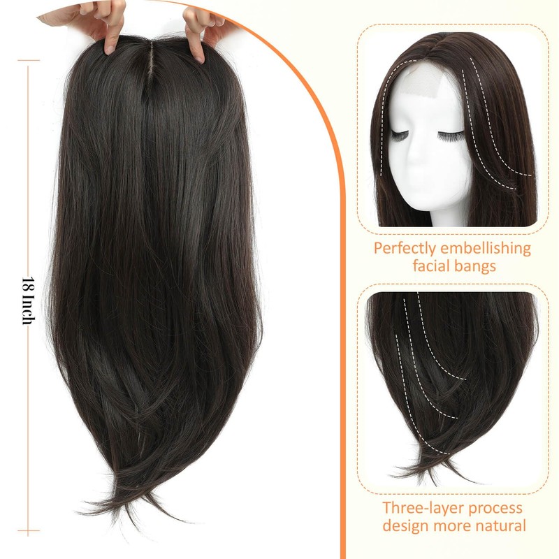 Peonymebeauty Hair Toppers, 6.5"X6.5" Big Base Topper for Hair Loss Long Layered 18 Inch Synthetic Fiber Wiglets Ladies Hairpieces for Women(Dark Brown)