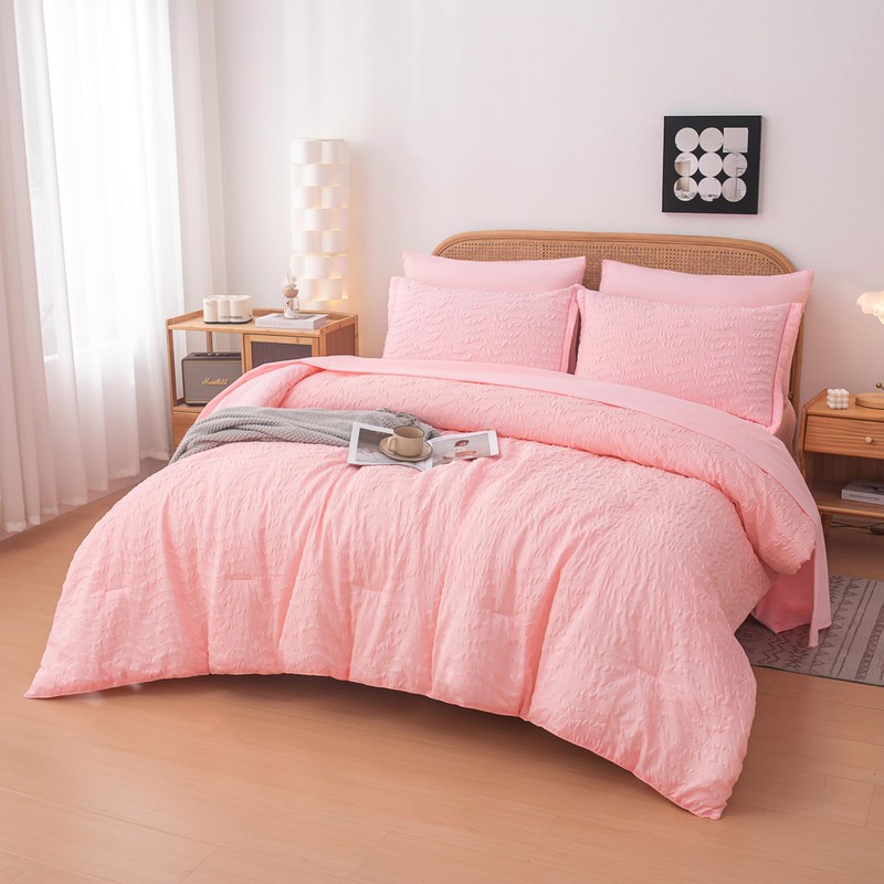 Peopleareok Pink Comforter Sets Twin Size, Bed in a Bag Comforter 7 Pieces-Soft Lightweight Microfiber Bed Set with 1 Comforter, 1 Flat & Fitted Sheet, and 2 Pillowshames & Pillowcases