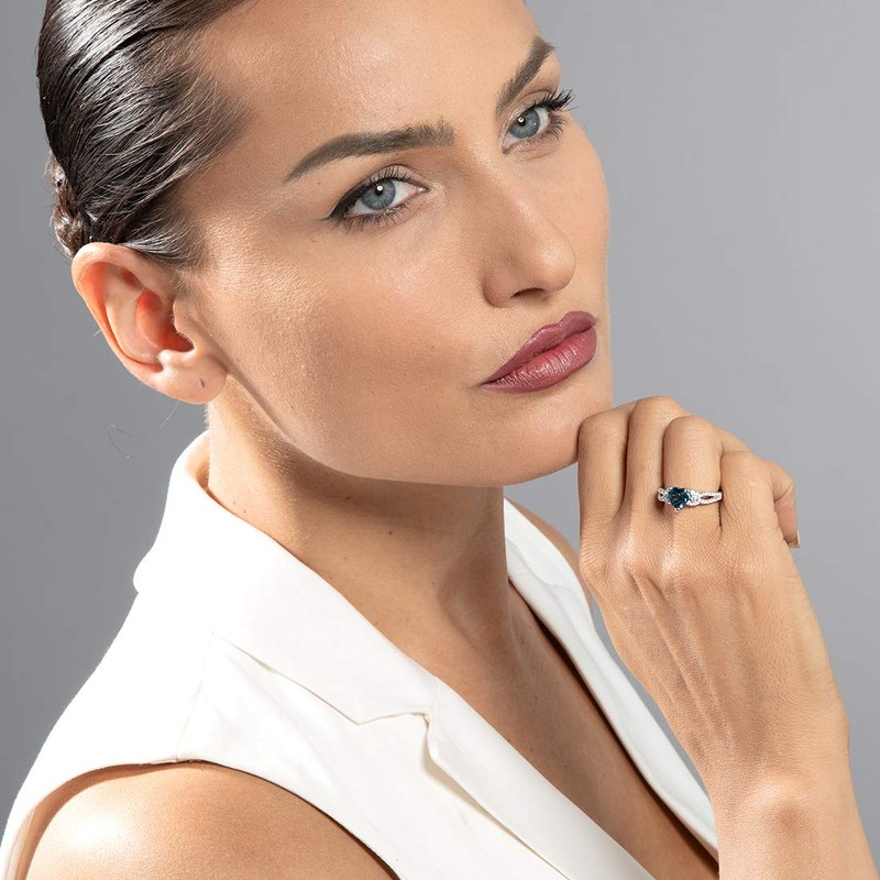 - PEORA QUALITY GENUINE LONDON BLUE TOPAZ - Cut from the finest material, 1.25 Carat, Heart Shape, 7mm, rich Caribbean Blue hue with a brilliant sparkle. Accented with white Cubic Zirconia stones.