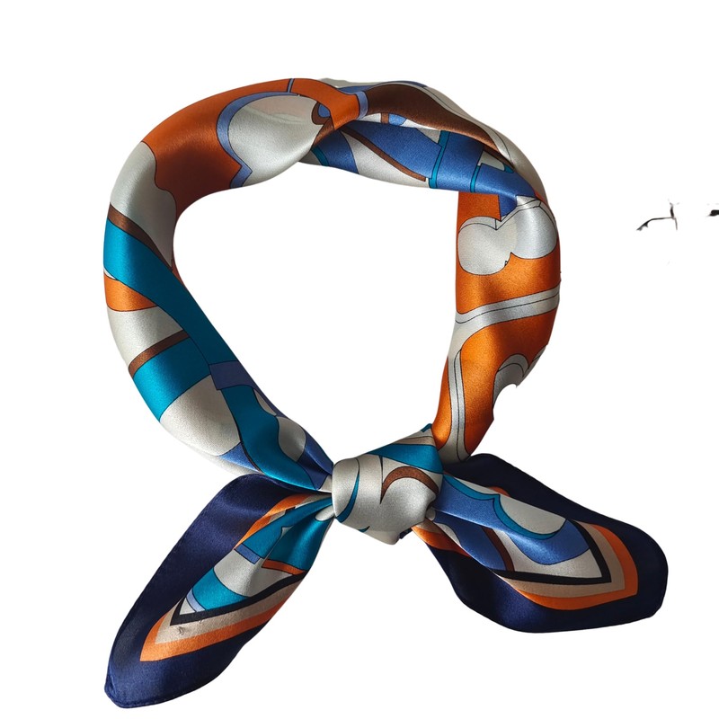 A: This scarf is made of 100% mulberry silk, giving it a luxurious and high-quality feel. It is square-shaped and measures 2121 inches (5353 cm), providing ample coverage and styling options. The scarf is incredibly lightweight and soft, ensuring maximum comfort when worn.