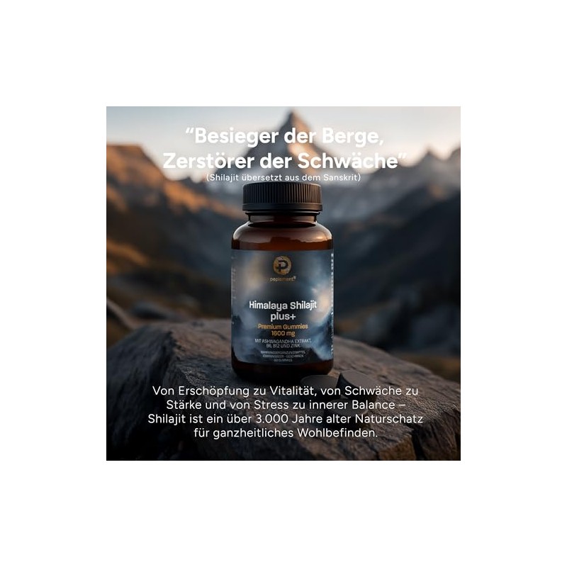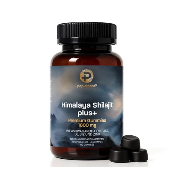 peplement Peplement Himalaya Shilajit Plus+ Premium Gummies 1600 mg | 60 Stck (Mumijo) Shilajit Gummi mit natrlicher Humins?ure, Fulvins?ure und Mineralstoffen, mit Ashwagandha Extrakt, B6, B12 und Zink