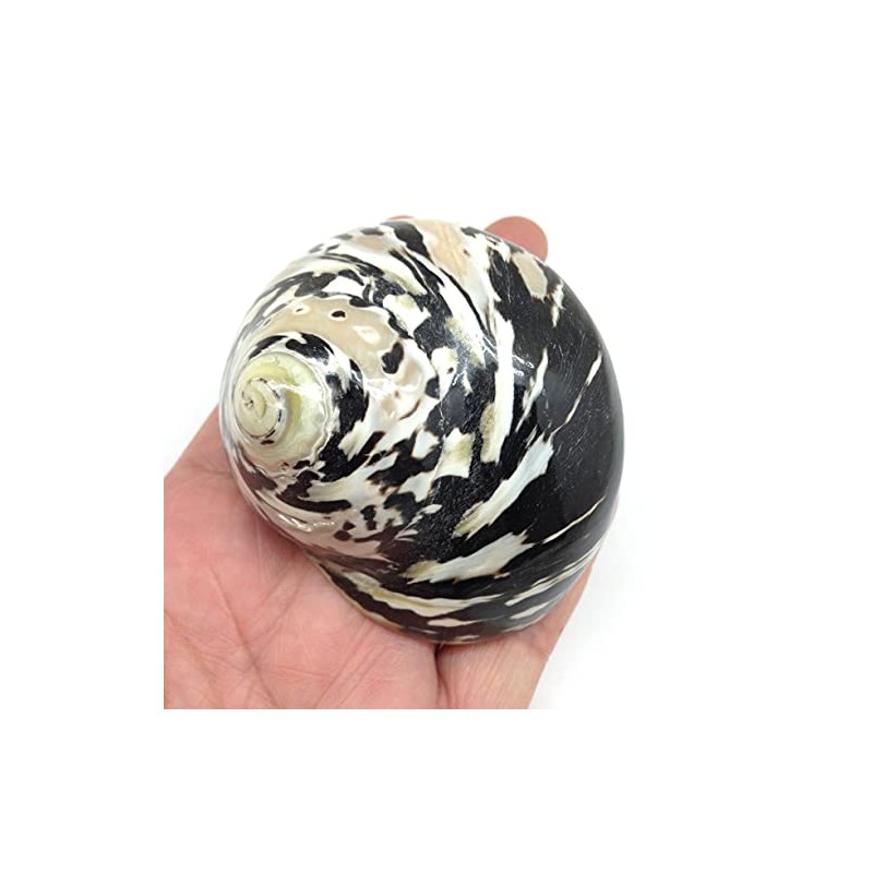 PEPPERLONELY 1 PC Black Polished Magpie Turbo Sea Shell, Hermit Crab Sea Shells, 2-1/2 Inch