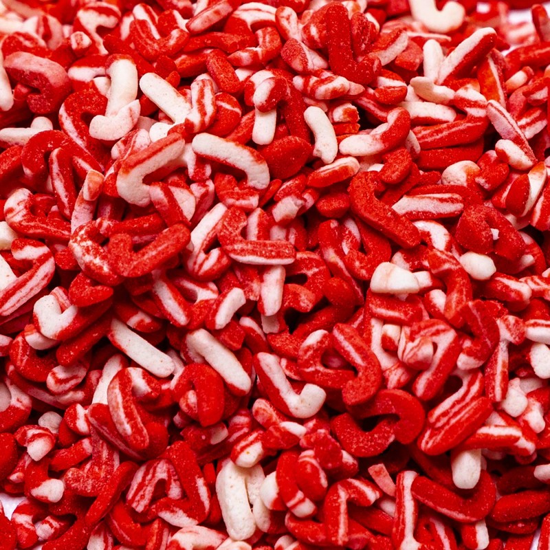 - PEPPERMINT CANDY CANE SPRINKLES: The Bulk-Priced Food Shoppe’s peppermint candy canes shapes look great on top of your holiday baked goods. This festive Christmas mix is perfect for cake decorating, cupcakes, cookies, and brownies. Liven up your Christmas cutouts with this colorful mix!