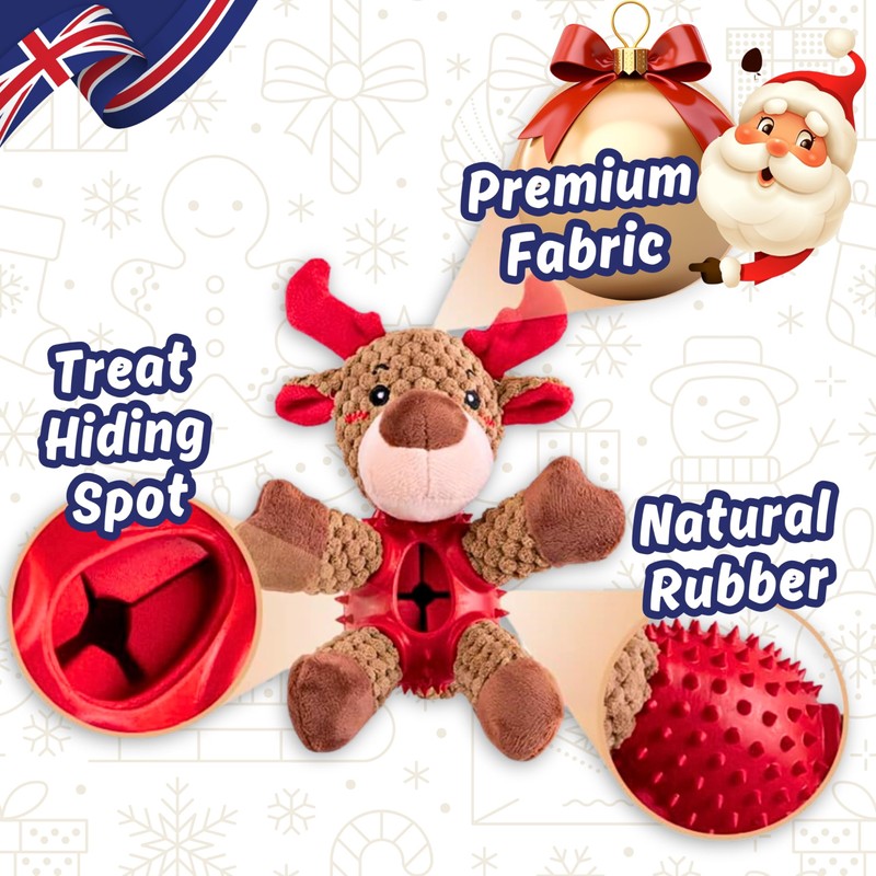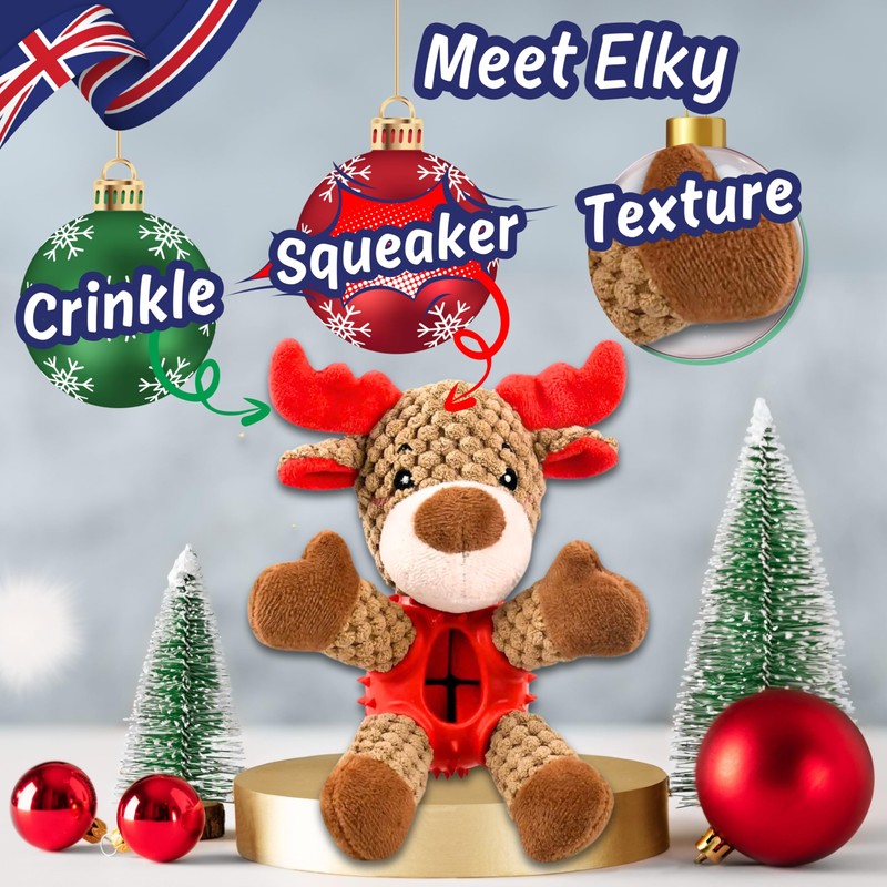 - 🎄🦌 MEET ELKY: Your puppy's new festive friend! Elky is a 4-in-1 Christmas themed toy that combines squeak, crinkle, plush, and treat-hiding fun! Specially crafted for small dogs and puppies to enjoy hours of play and interactive fun. Perfect for Christmas joy!