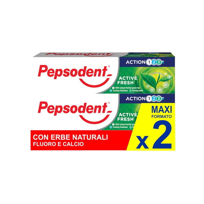 Pepsodent Active Fresh Toothpaste with Fluoride and Calcium for Caries Protection 24 Hours 75ml (2x75ml Pack)